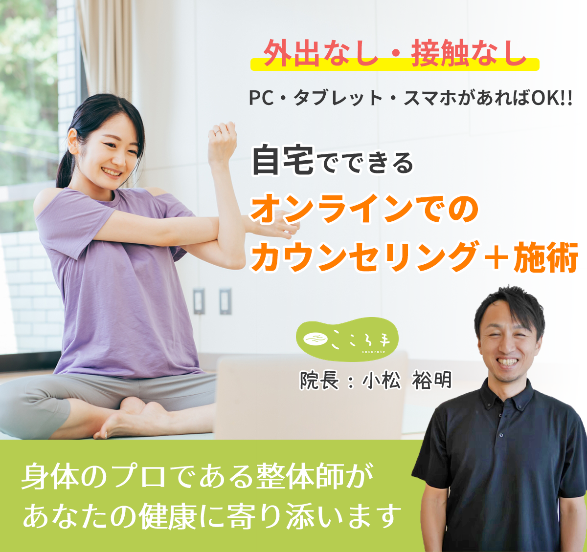 そこで当院は、対面する事無く・また接触する事無く、身体の不調を改善できるようにzoomを使用したオンラインでの施術を開始致しました。