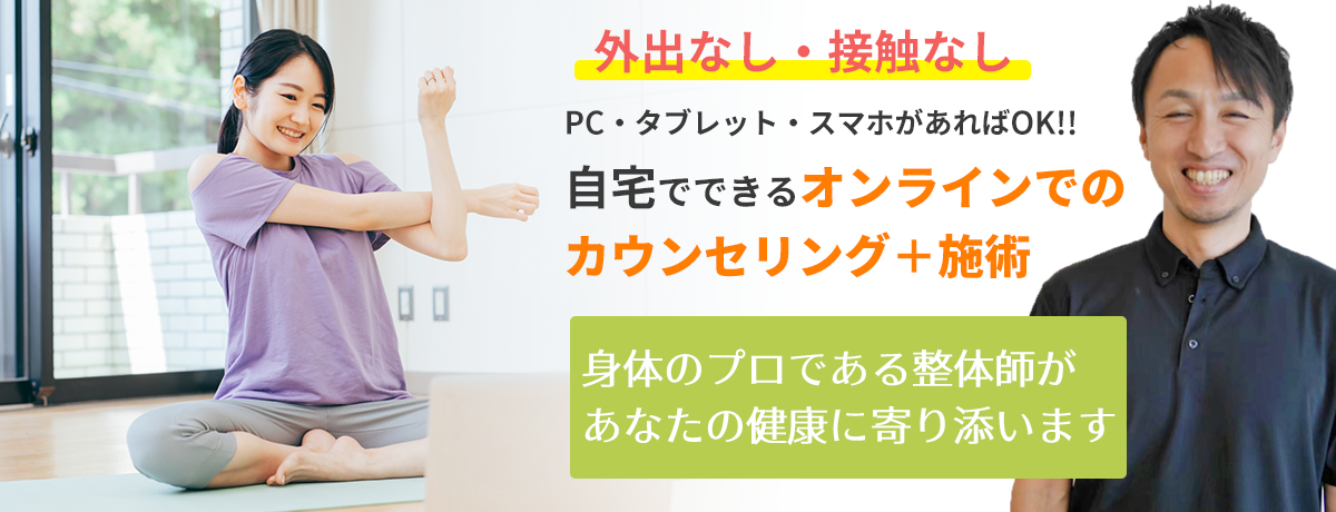 上記に当てはまる方は、是非一度「オンライン施術」をお試し下さい。